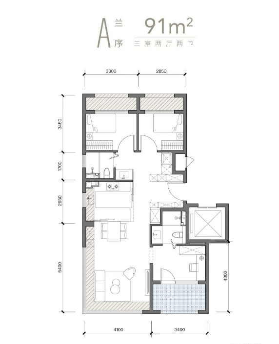 91㎡三居:共计88套,使用面积可达88㎡左右,套内使用率将近97%,赠送面积约16㎡,边户270°采光飘窗设计,客厅+餐厅+厨房+阳台全贯通,270°转角飘窗延伸至厨房,采光面达9米, 南向双面宽+1.8米内嵌阳台(赠送8㎡) ,客厅面宽4.1米,主卧套房带独立卫浴,北向两卧室通面宽设备平台全赠送;