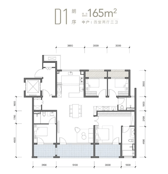 165㎡四居:共计42套,使用面积可达152㎡左右,实际使用率将近92%,赠送面积约24㎡,南向四面宽+11.3米景观阳台,南向双套房设计+独立电梯厅,主卧套房面积达35㎡,配备步入式衣帽间+独立书房,主卫南向观景窗+观景浴缸,客厅面宽5.1米,中厨U型操作区+西厨岛台+家政间,一梯两户设计,次卧带独立卫浴,3.1米层高:搭配无主灯设计,空间感媲美200㎡大平层。