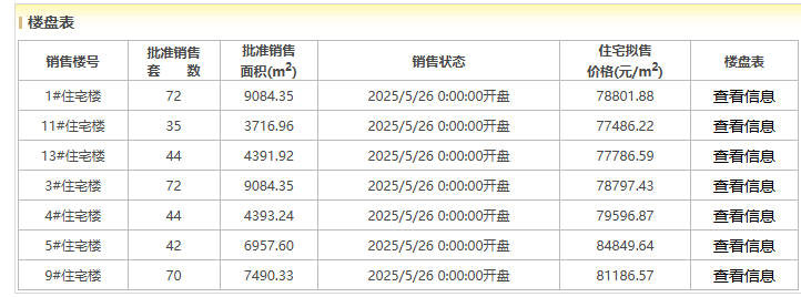 本次获批共计7个楼栋,379套房源,层高8-18层不等,总计供应面积约4.51万平方米,这宗地不设销售指导价,拟售均价7.99w/㎡,总货值大约36.09亿元。