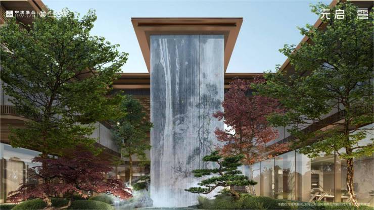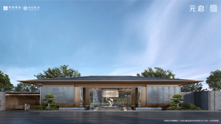 归家的仪式感,从进门就开始营造。元启设计“三进归家礼序”,每一次移步,都是从“城市喧嚣”到“居家宁静”的过渡。穿过飞泉叠瀑,走过园林小径,心情在仪式感中逐渐放松,这种“归家即度假”的体验,让“回家”成为期待。而约37米宽、7.3米高的社区主大门,以景泰蓝奢石与金属打造,既有视觉上的尊崇感,又传递出“被欢迎”的暖意。