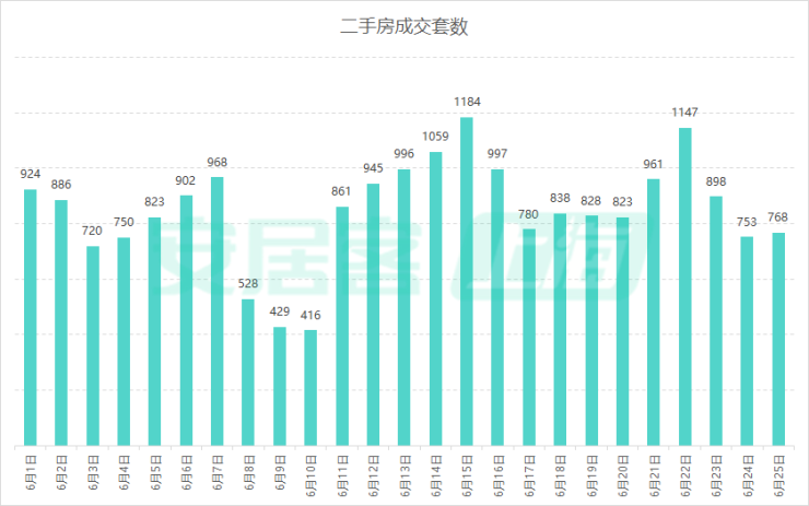 根据网上房地产公布的数据,6月截至6月25日,上海二手房(含商业)网签量累计已超21000套,其中二手房多日网签破千套。