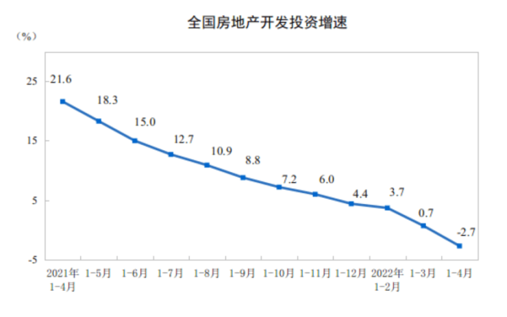 国家统计局:2022年前4月全国房地产开发投资下降2.7%