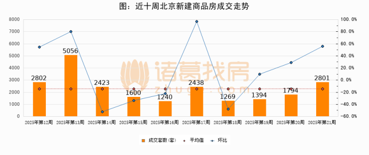 【北京成交周报】第21周新房成交2801套,二手房4148套,涨价房源616套