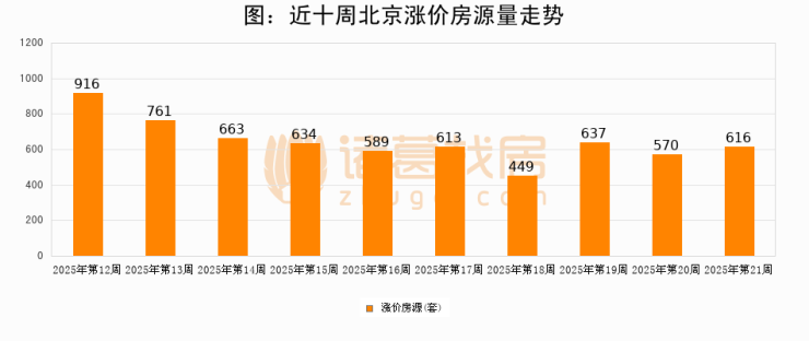 从调价房源来看,第21周北京涨价房源616套,较上周上涨8.1%。与此同时,21周涨价房源占比回落0.02个百分点,业主信心小幅波动,购房者可则需入市。