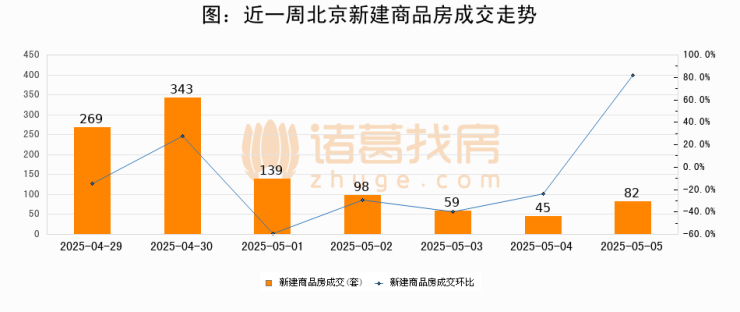 【北京成交日报】05月05日新房成交82套、二手房35套;涨价房源75套