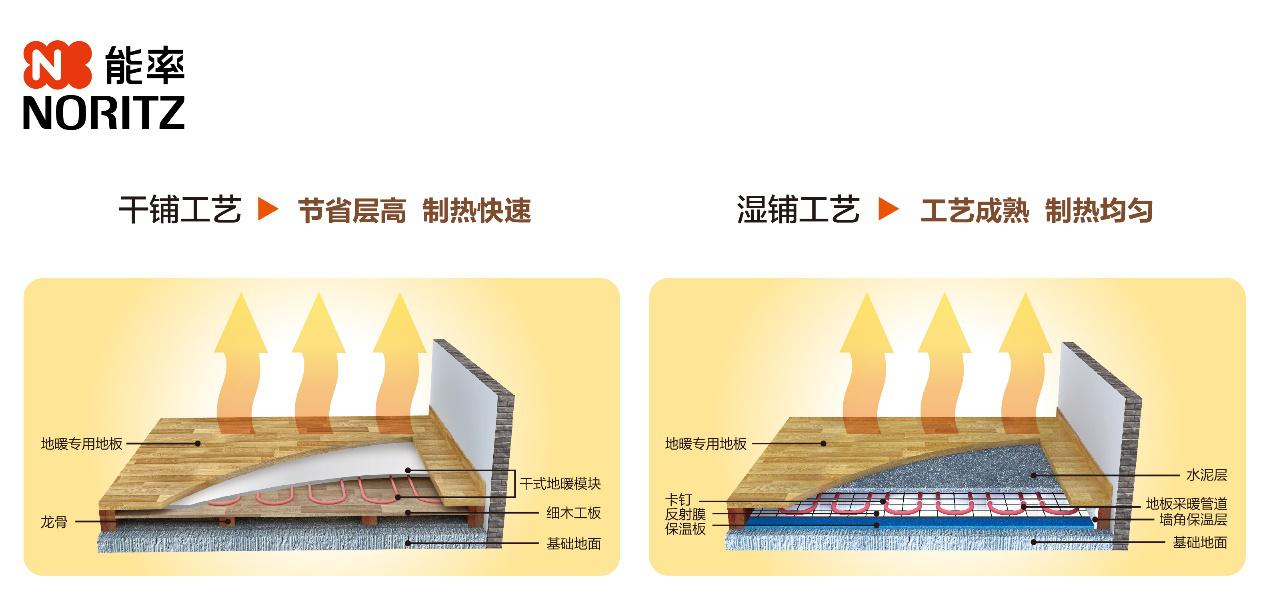 地暖主要分为湿铺和干铺两种,功能特点各有差异: