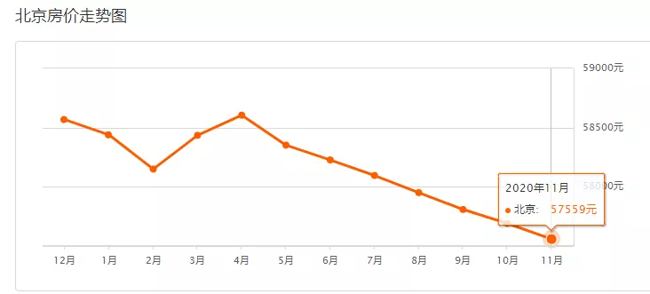 而根据安居客网站显示,近一个月北京二手房均价约57559元/㎡,环比上月下跌0.23%,同比去年同期下降1.68%。