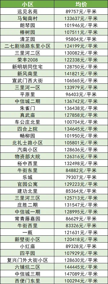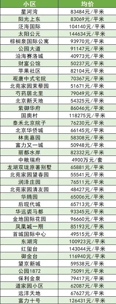 下面为北京部分小区较新二手房价格,让我们一起来看一下。