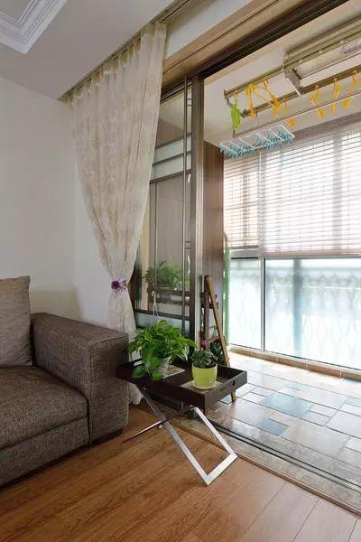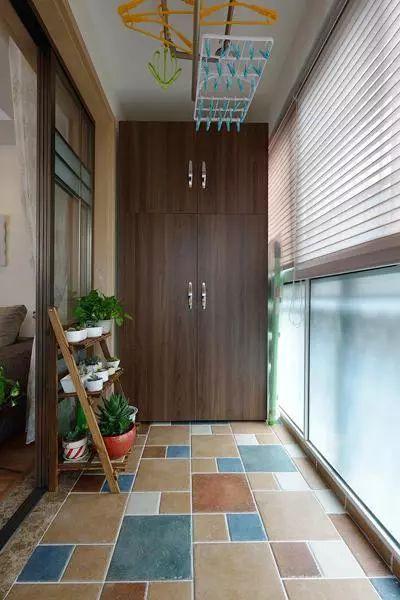 ▲阳台铺的是复古的拼色砖,靠墙做了一个深木色顶柜,充满个性之余不乏实用性。