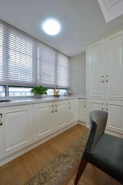 ▲百叶帘营造了若隐若现的朦胧美,靠窗的柜面额外做了一个洗手台,配合小鸟和绿植装饰,餐厅的一角显得轻松又惬意。