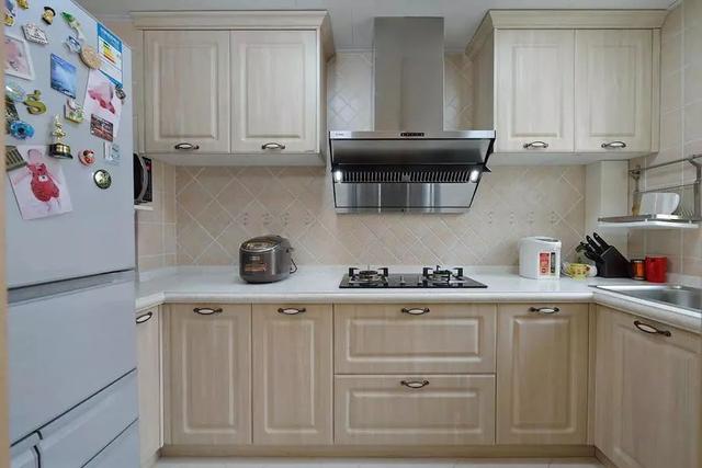 ▲橱柜和墙面同样都是素淡的杏仁色,显得整洁大方。而大量的冰箱贴,则给客厅空间注入了可爱趣味。