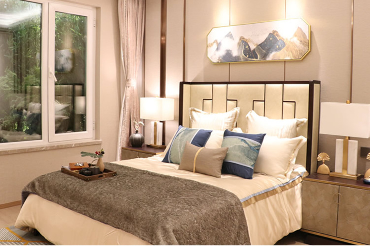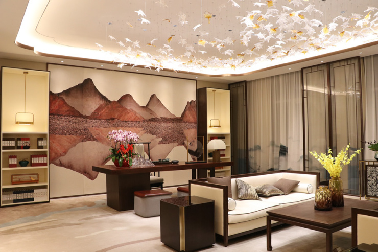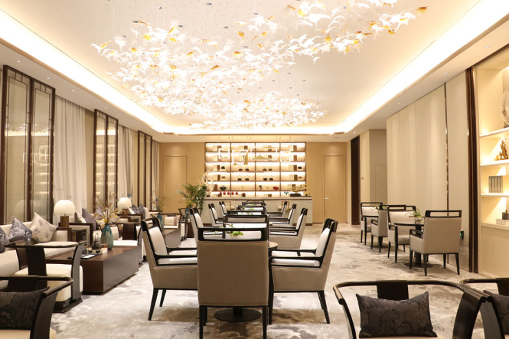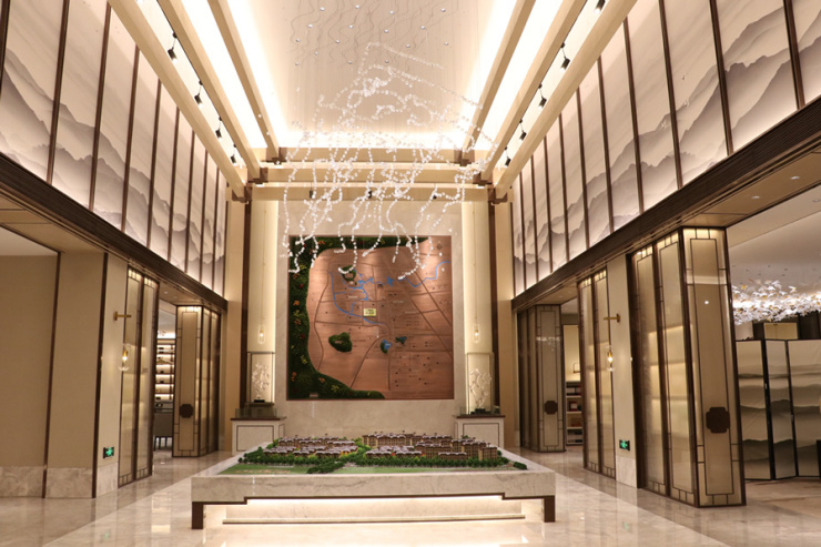 “五夜霜为染,轻明映碧流。山林惊有色,天地欲无秋”。人们一直在不断的追求中寻求着向往美好的品质,山屿湖接待中心,除却项目接待大厅、洋房实景样板间,还集合了文化展示区、VIP接待区和儿童游乐室等多种功能,用实际行动诠释着对当代新中式人居的美好想象。