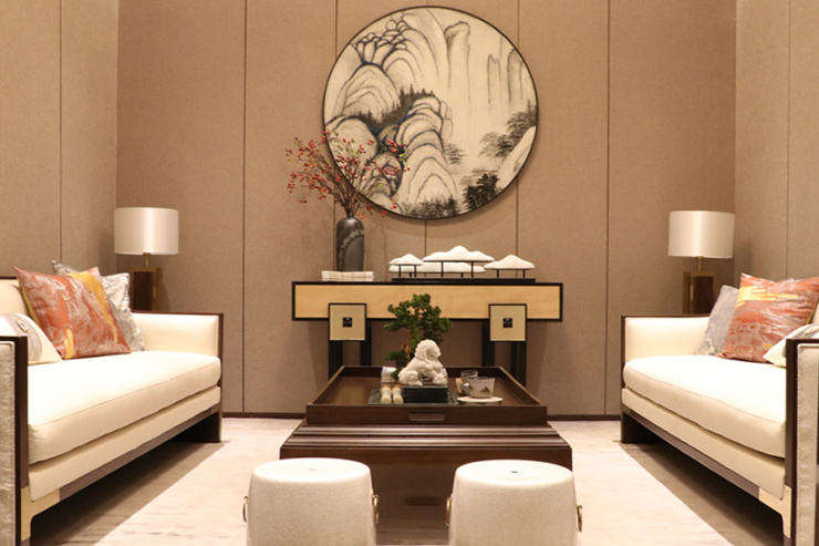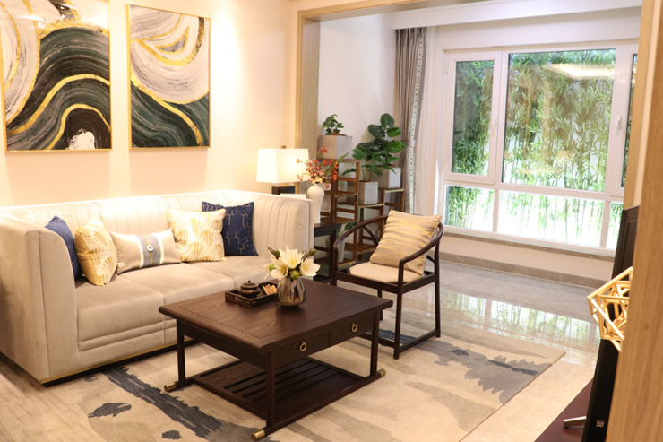 室内中式沙发与木饰面这些雅致的中国元素细细堆叠,传递着古典雅致的生活情怀,关于古老东方的无限遐思印刻在目力所及的周边。