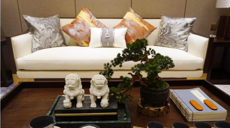 这一方幽静新中式私享空间,从整体到细部都洋溢着华美之风,离散化的色彩在精研的美学体系中触发情绪与感知的开关,配合山水器皿、植物摆件与严选的造型装置,使VIP接待区散发出端恪的气息。