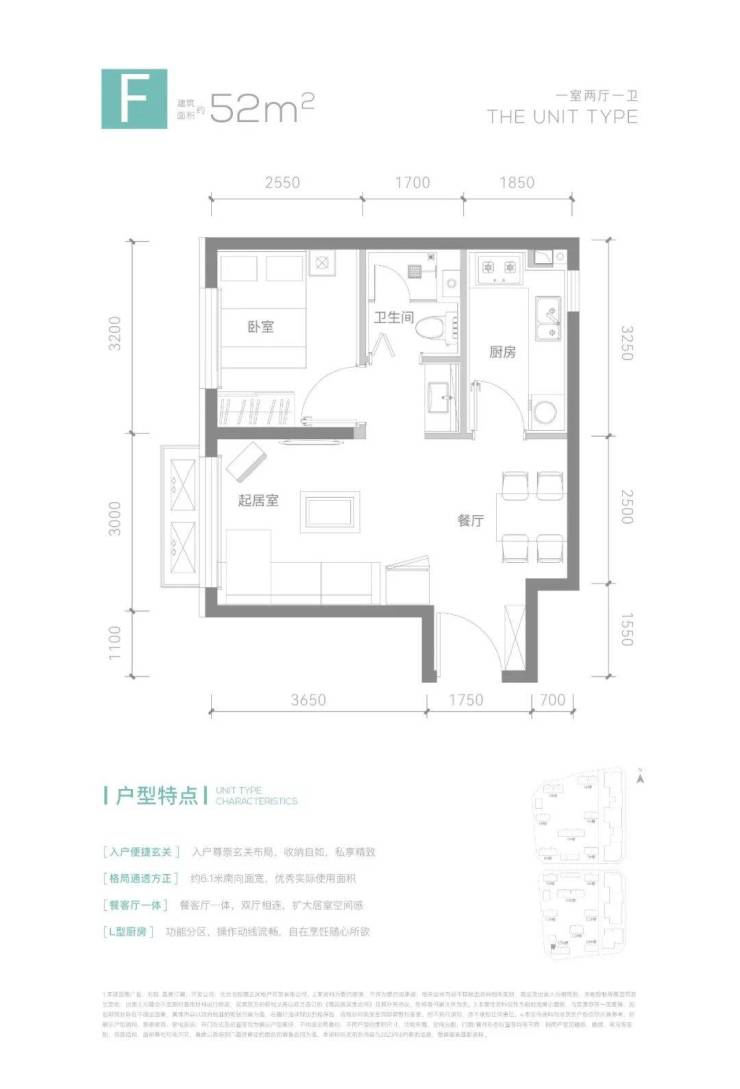 52㎡一居,类似小型公寓设计,适合单身的年轻人购买。