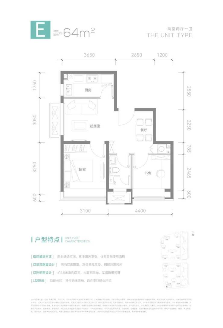 主力面积段75-115平二-四居,有少量52-64㎡户型,项目执行套内70/90政策,总价最低260万就能上车。