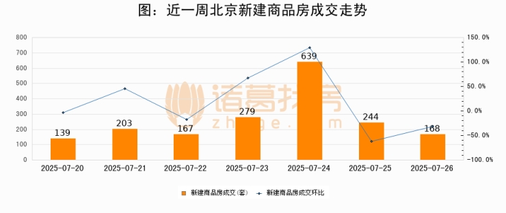 【北京成交日报】07月26日新房成交168套、二手房203套;涨价房源67套