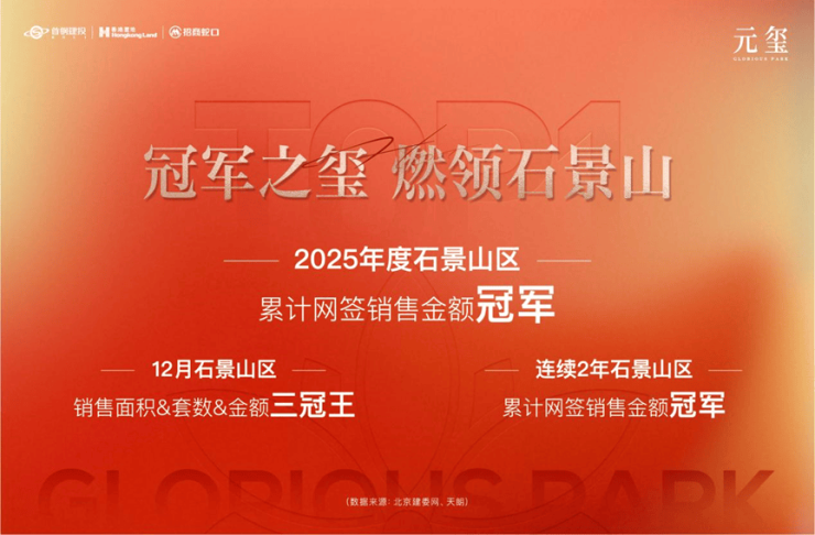 真正的冠军,经得起时间的复验。继2024年荣膺石景山累计网签销售金额冠军之后,再度赢得2025年度石景山区累计网签销售金额冠军,连续2年热势领跑。同时,也摘得2025年12月石景山区销售面积&套数&金额三冠王荣誉。持续热销的背后,是其“硬核产品力”与“恒产恒值”逻辑的叠加,同时,也是其对元玺“世界品质”承诺的有力践行。