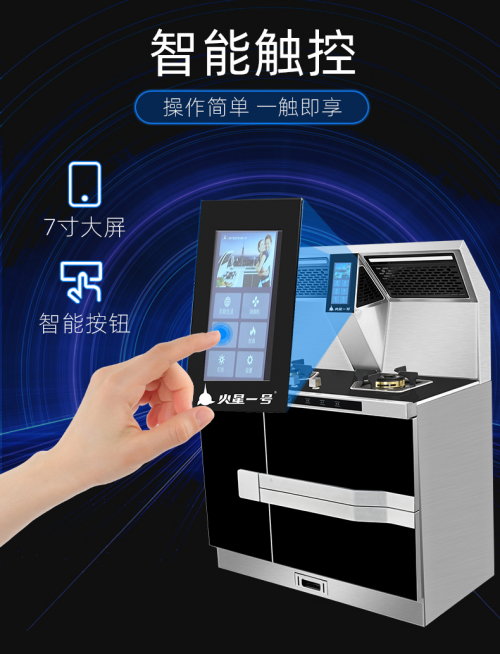 且火星一号V08集成灶其特有的7寸触摸大屏,可在烹饪的时候翻阅菜谱不说,更能无线WIFI连接,做菜的同时也能看视频。