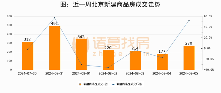 【北京成交日报】08月05日新房成交270套、二手房629套;涨价房源191套
