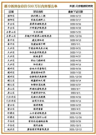 从北京链家研究院提供的,含总价500万元以内的新房房源名单可以看出,顺义和大兴的新房房源较多,有10个及以上的项目可供刚需选择。但值得一提的是,位于城中核心区的东西城以及海淀并没有符合条件的项目,并且同属于城六区的朝阳、石景山和丰台不超过500万元的新房房源偏少。
