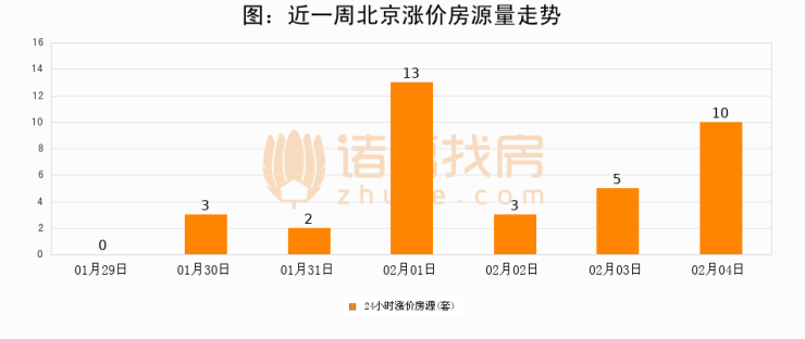 根据诸葛找房数据显示,北京24小时涨价房源量为10套,较02月03日增加5套,环比上涨100%。与此同时,涨价房源占比小幅扩大,业主信心有所提升。