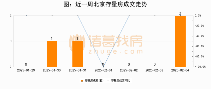 从存量房来看,2025年02月04日北京存量房单日成交2套,比昨日增加2套,环比上涨0%。从近一周存量房成交来看,北京存量房日均成交套数为0套,02月04日单日成交2套,高于近一周平均水平0%。