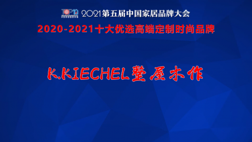 K.KIECHEL整屋木作凭借一流的定制品牌影响力,继2019-2021年度获得“2019-2020十大优选木作定制品牌”后,又在此次大会中荣获“2020-2021十大优选高端定制时尚品牌”称号。