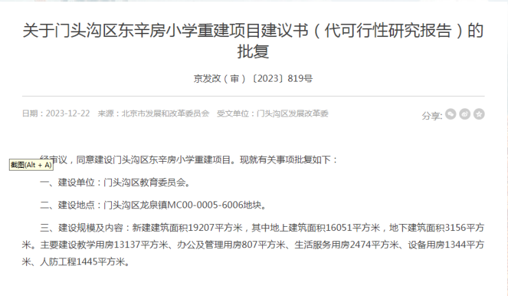项目位于西城区天桥街道太平街与永定门西街交叉口东北角。新校区规划办学规模为教学班93班,其中小学47班、初中23班、高中23班,预计今年开工建设,2025年建成投用。