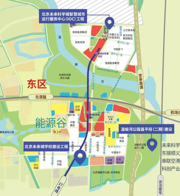 2009年前后,最初发展的是昌平未来科学城东区,这个区域主要是以能源类国企为主,比如国家电网公司、国家能源集团、中国商飞、中国电信、中国电子、中国兵器等不同领域的巨头。