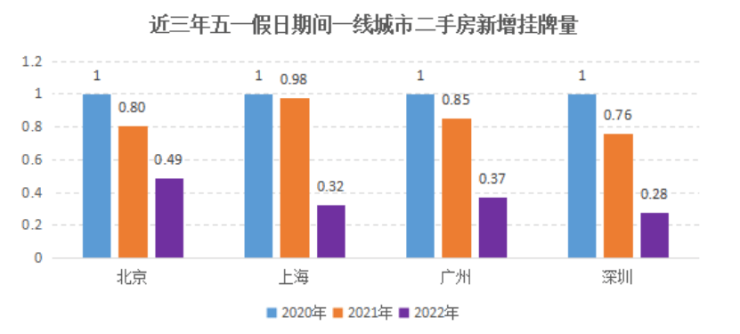 据58安居客房产研究院统计数据显示,2022年五一假期全国二手房购房需求热度相比2021年增加14%,二手房为主的一线城市出现了冷热不均的现象。上海二手房购房需求热度相比2021年同期大跌25%,深圳大涨78%,北京和广州分布上涨7%和18%。