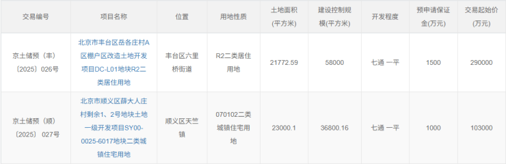 2、 规自委上架顺义、丰台两宗新地未来或以改善产品为主