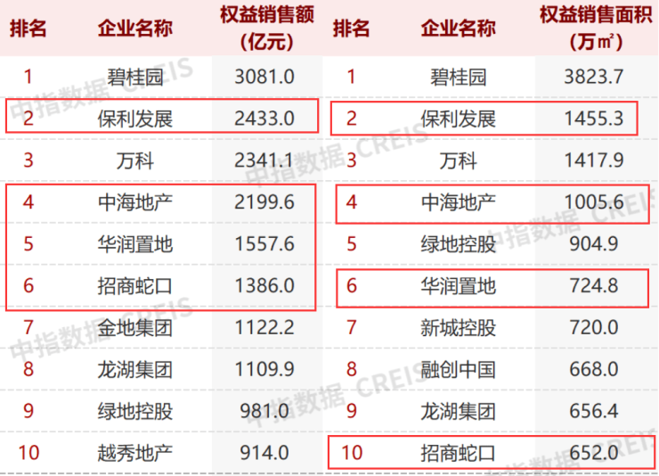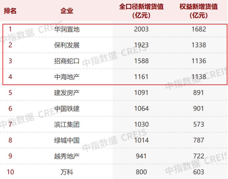 销售额均列百强房企TOP10、拿地权益额高居行业前列,新增货值霸榜行业前4位……