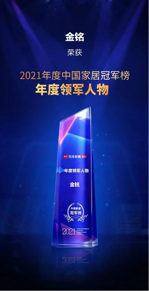 在本次的颁奖盛会中,喜梦宝荣获双奖——喜梦宝家居品牌荣获冠军榜匠心制造品牌奖,喜梦宝家居集团副总裁金铭荣获冠军榜年度领军人物奖。