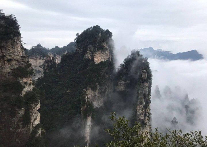 2、袁家界:位于杉刀沟北麓,是以石英岩为主构成的一座山岳。是张家界公园一处风景集中地。主要景点有后花园、迷魂台、天下排名前列桥等。