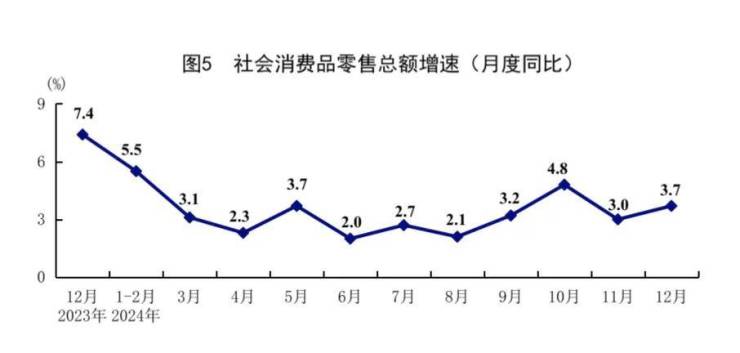 消费方面,2024全年社会消费品零售总额487895亿元,比上年增长3.5%。