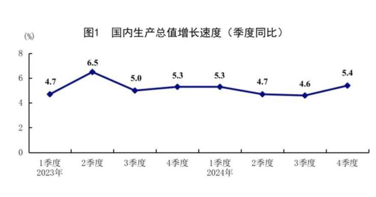 分季度看,一季度GDP同比增长5.3%,二季度增长4.7%,三季度增长4.6%,四季度增长5.4%。
