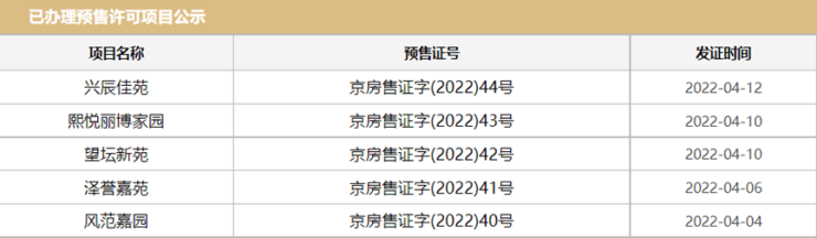 根据住建委网站显示,清明假期当周(4月4日-4月10日)北京新房市场供应端稍有回落,共有4个项目取得预售证,分别为熙悦丽博家园、望坛新苑、泽誉嘉苑、风范嘉园。