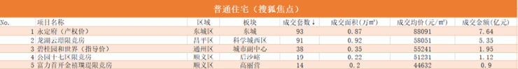 ·昌平通州东城获成交套数前三名
