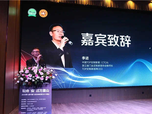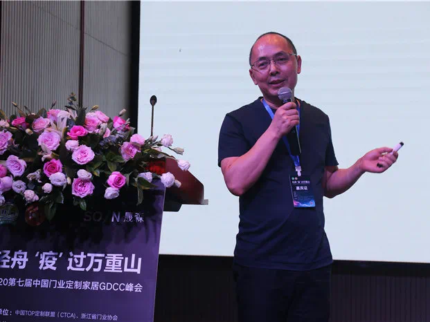 会议首先由浙江省门业协会秘书长李进进行嘉宾致辞。李秘书长在致辞中,介绍自己洞察到的三个行业变化,变化的关键词分别是数据、风格和融合。数据上,上半年,零售木作定制及木门企业,受到影响过大。但5月份已成恢复之态,6月份基本回归正常;但排名前列季度数据显示,中国家居业上市公司90%是亏损,不到10%的企业呈现逆势上涨。增长的企业基本以工程渠道为主,比如:江山欧派。风格上,李秘书长介绍说,通过2020广州建博会也可以看出,不管是木门还是定制家居,产品风格基本集中轻奢、极简、新中式。融合上,定制企业与木门企业的边界正在被打破,基本呈现定制企业跨界做木门,木门企业延伸做定制的局面。