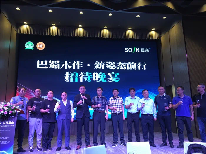 在以“巴蜀木作·新姿态前行”为主题的招待晚宴上,企业代表在李进秘书长的带领下走上舞台,共同举起酒杯,为2020下一阶段的企业发展祝福。