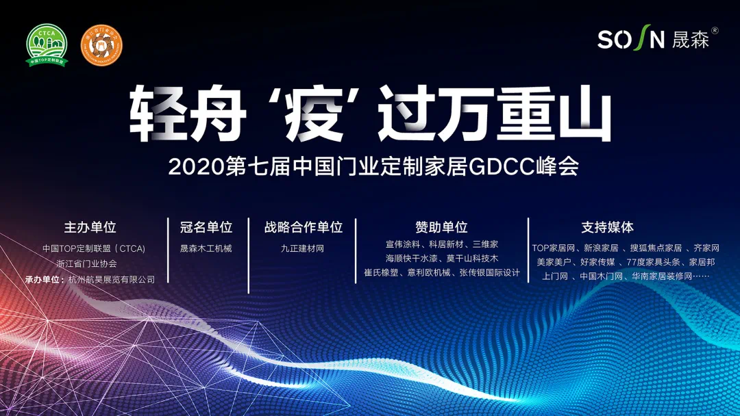 此次2020第七届中国门业定制家居GDCC峰会组织者相关信息为如下:主办单位为中国TOP定制联盟(CTCA)、浙江省门业协会;承办单位为杭州航昊展览有限公司;冠名单位为晟森木工机械;赞助单位为宣伟涂料、科居新材、三维家、海顺快干水漆、莫干山科技木、崔氏橡塑、意利欧机械、张传银国际设计;支持媒体为TOP定制家居网、搜狐焦点家居 、齐家网 、美家美户、好家传媒 、77度家具头条、家居邦 、上门网 、中国木门网、华南家居装修网。其中TOP定制家居网是从属于浙江门协的行业媒体。TOP定制家居网积极洞察家居企业营销所需,力求提供在定位、策划与传播方面,为定制家居企业提供有效的价值服务。