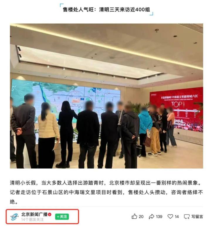 因为就在同一时间,北京好几个新盘售楼处里挤得跟早高峰地铁似的,首开动辄两三百套的去化,一点不像要凉的样子。
