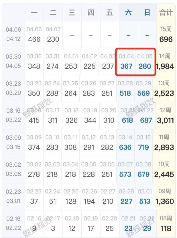 周六367套,周日280套,搁谁看了都觉得是降温信号。