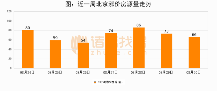 根据诸葛找房数据显示,北京24小时涨价房源量为66套,较08月29日减少7套,环比下降9.6%。与此同时,涨价房源占比小幅回落,对于购房者来说是一个入市窗口期,购房者可抓住时机入市。