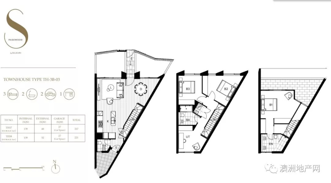 TownhouseTB18户型 139+52sqm平 North北3Bedroom房+2 Car park车位 $1,892,000