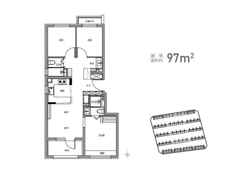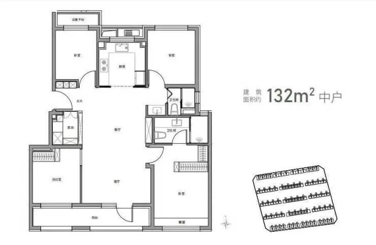 解析:两面宽三居,中间户92平,边户97平,南侧客厅带阳台,主卧套房设计