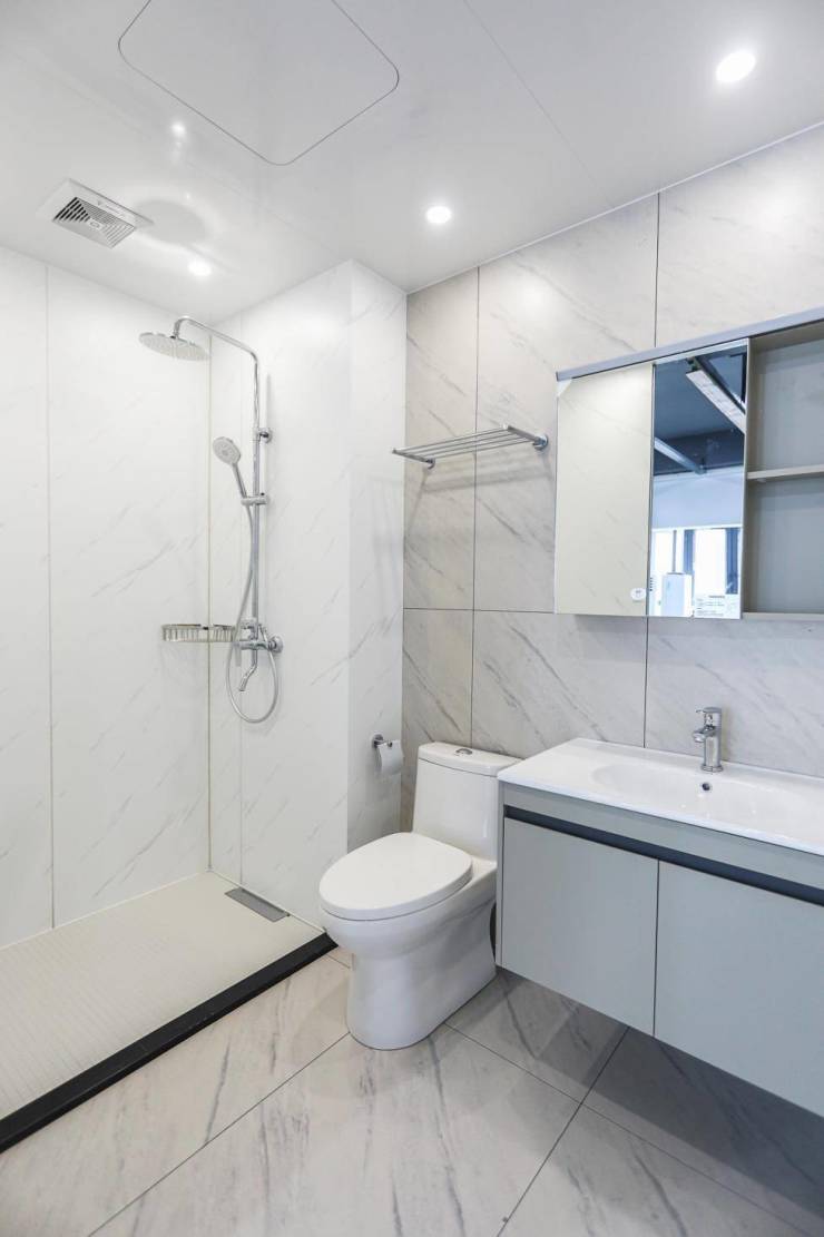 大赛中,华耐智装参赛队伍搭建整体卫浴共用时4小时,采用工厂预制、现场装配的模式,墙顶地整体施工,在无需做防水的情况时完成了安装,大大提升了施工效率。将一体化防水底盘与壁板、顶板组合,集成各类功能洁具,构建独立卫生单元,在有限空间内实现盥洗、如厕、沐浴、收纳等多元功能整合。具有安装高效、防水严密、环境舒适、使用安全的特性,满足现代居住对卫浴空间功能与品质的需求。干湿分离的设计,进一步提升了卫浴空间的实用性与舒适度。