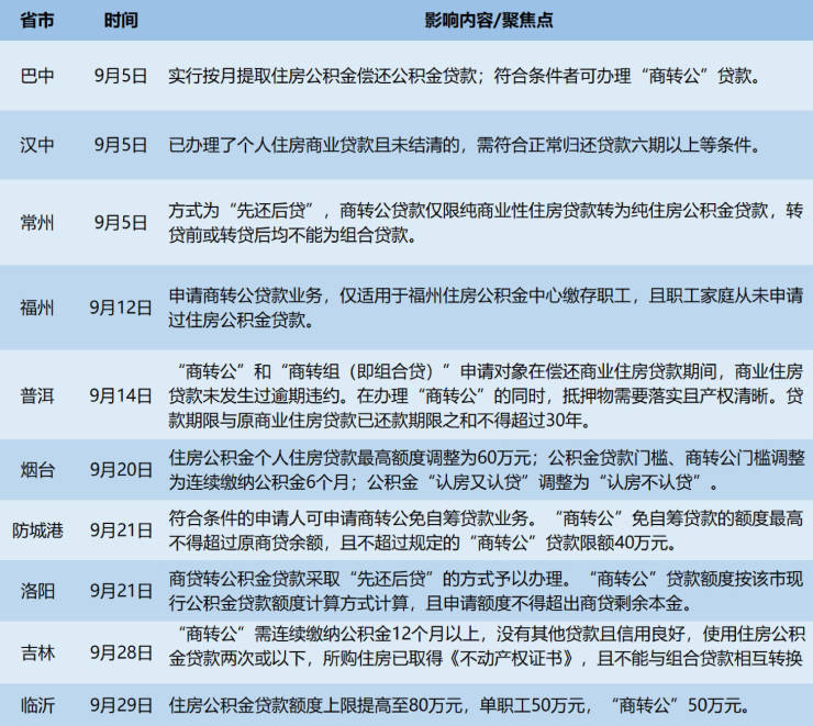根据新京报记者梳理,自从9月以来,陆续有福州、常州、汉中、普洱、洛阳、吉林、巴中、防城港、临沂等城市推出“商转公”政策。