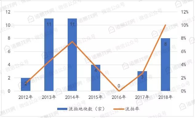 除正常成交地块外,2018年土地流拍现象明显增多,流拍率达到10%,创2012年以来较高水平。据诸葛找房数据监测,2018年北京市共出现8宗土地流拍(1月流拍3宗,2月流拍1宗,4月流拍2宗,6月流拍1宗,11月流拍1宗),接近2017年的3倍。